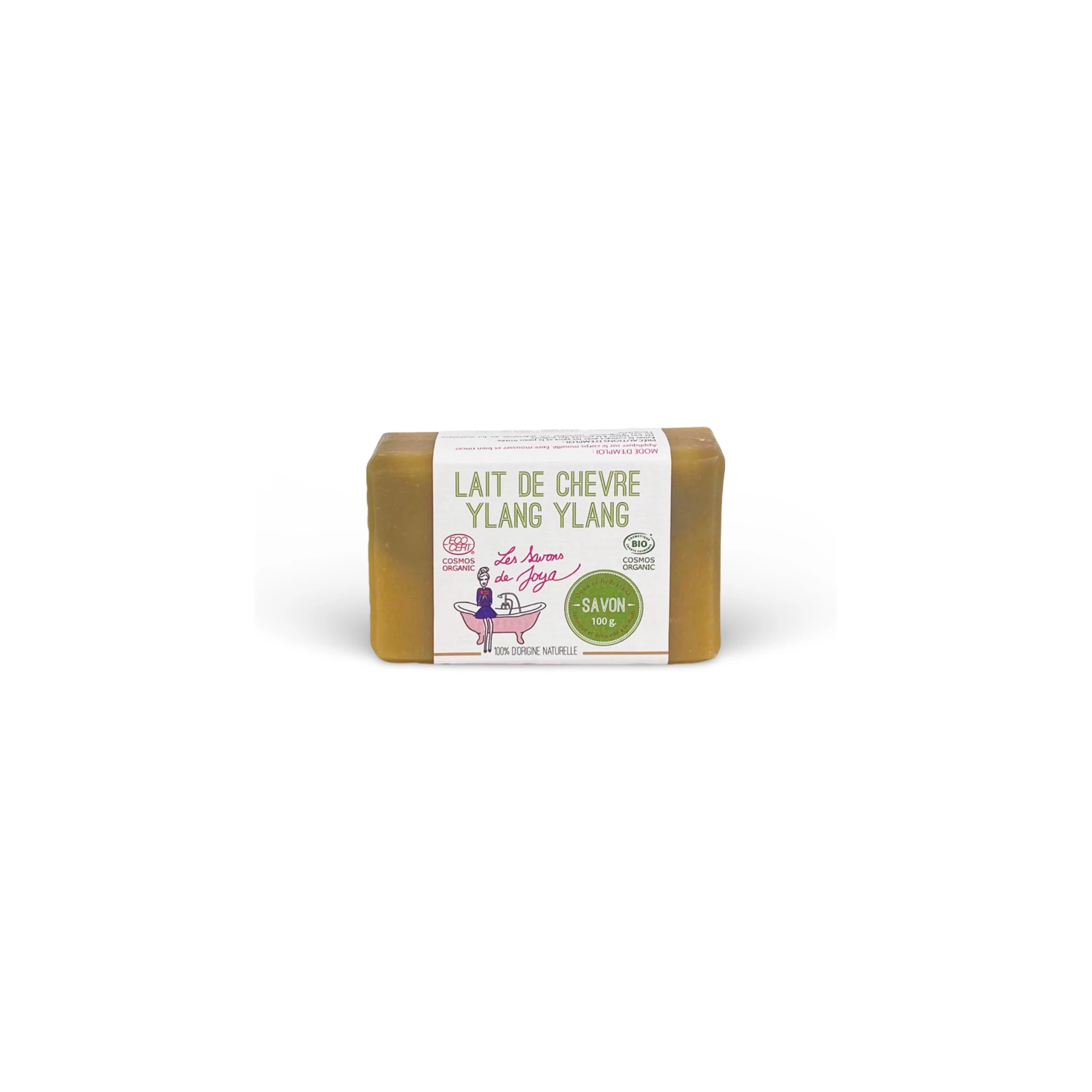 huile d’olive*,huile de coco*, beurre de karité*, l’huile de colza*, eau, lait de chèvre*, soude, huile d’amande douce*, huile essentielle d’Ylang Ylang*.