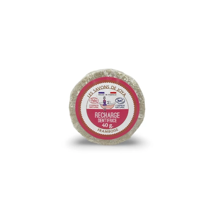 Recharge pour notre dentifrice solide à la framboise, un dentifrice particulièrement adapté aux enfants, qui ne contient pas d'huile essentielle. Poids : 40 grammes