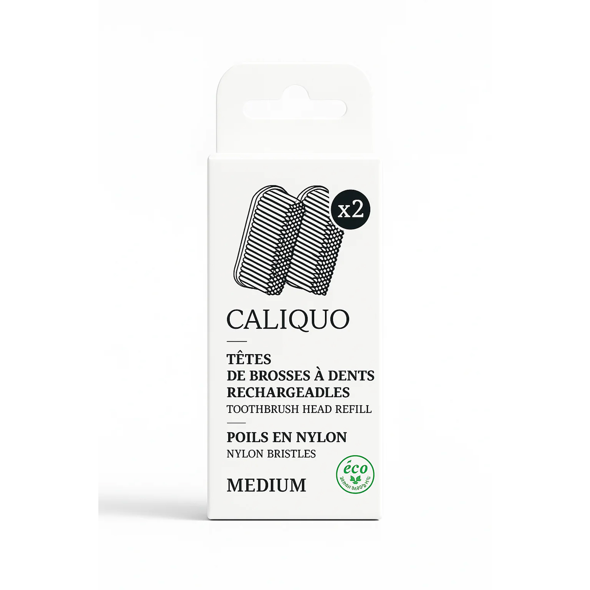Pack de deux recharges pour brosse à dents Caliquo, souple ou médium :