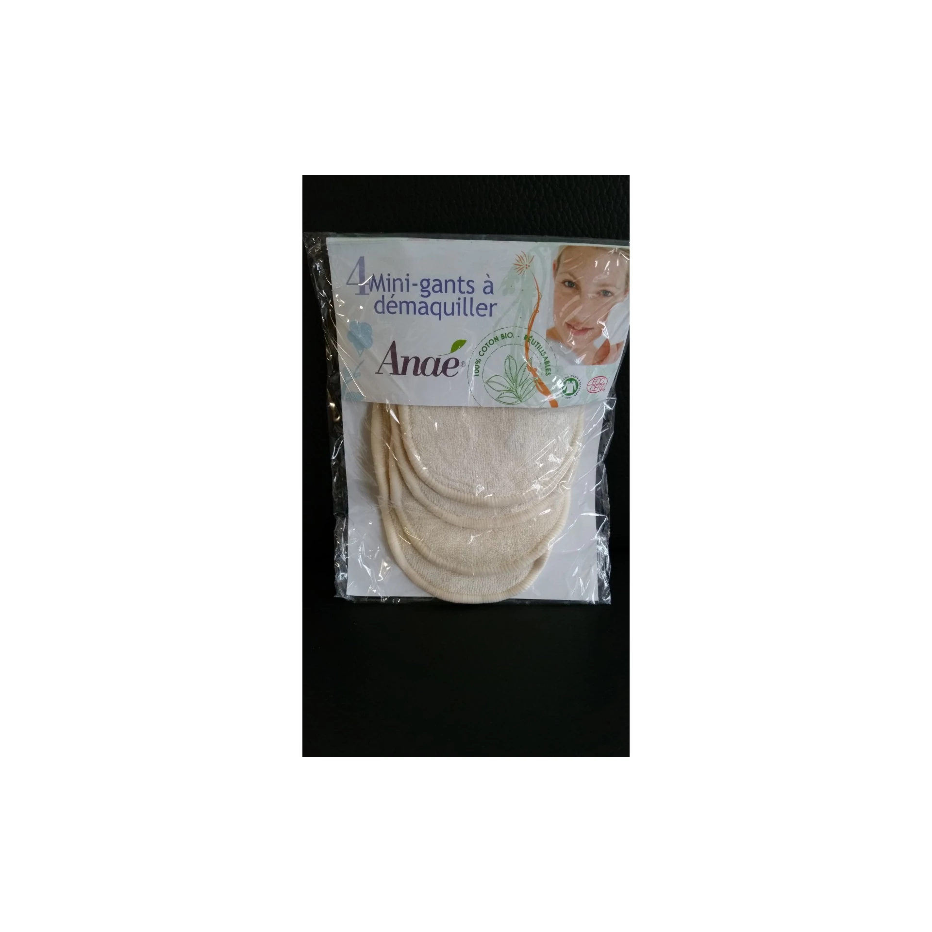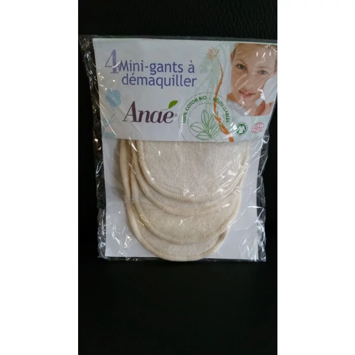 Lot de 4 mini gants à démaquiller lavables.