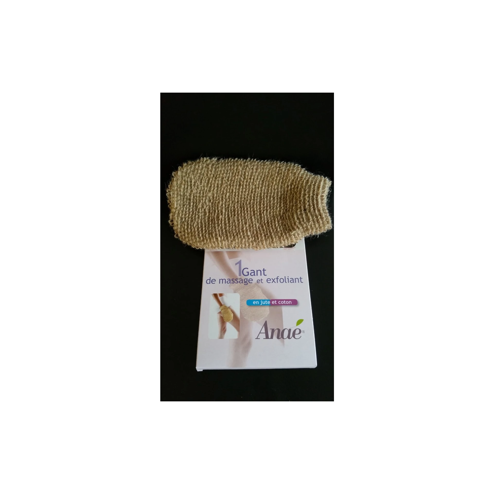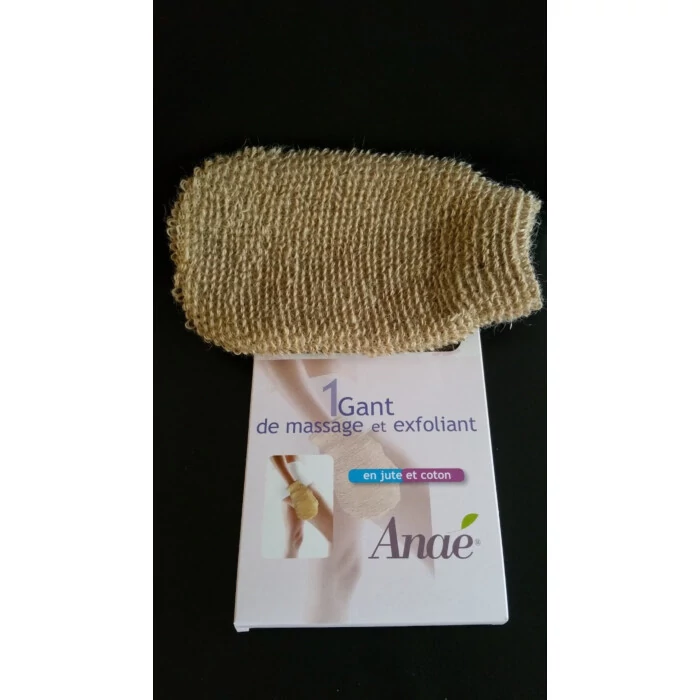 Gant massant et exfoliant en jute et coton.