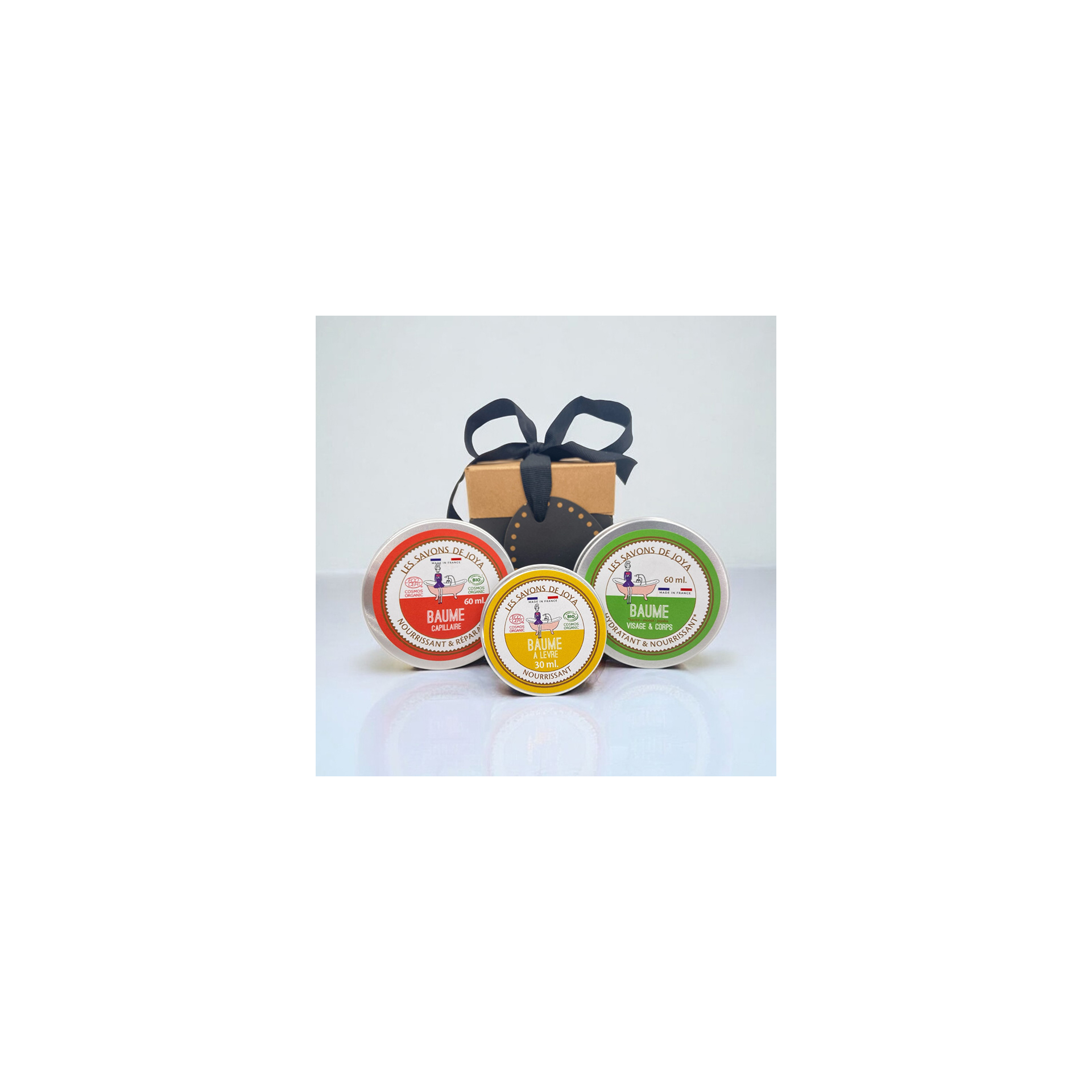 Découvrez le coffret exclusif Les Savons de Joya, qui comprend trois baumes indispensables :