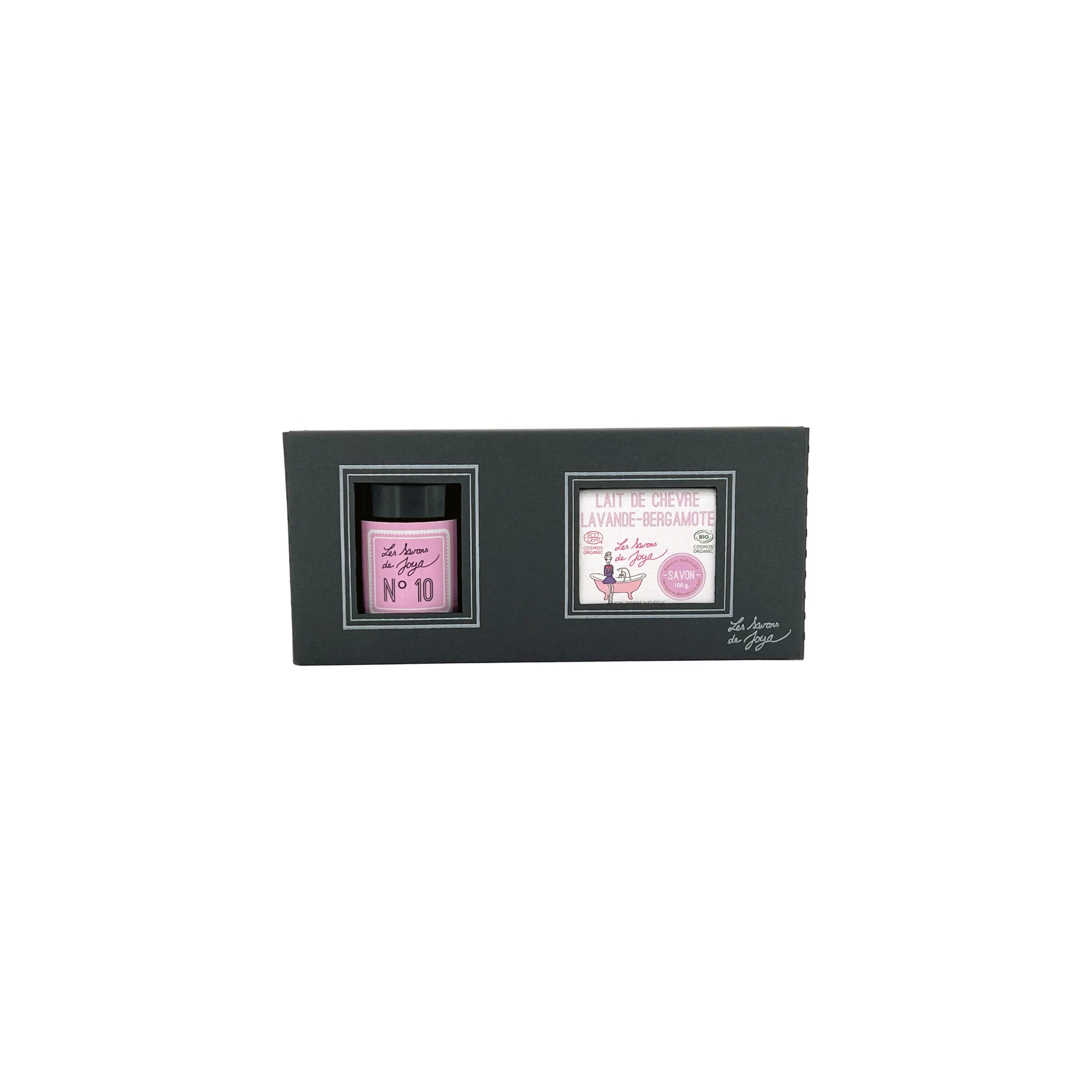 Ce coffret des Savons de Joya associe une bougie luxueuse parfum lavande‑bergamote et un savon doux enrichi en lait de chèvre. Le duo parfait pour un moment de soin et d’ambiance, en toute conscience.